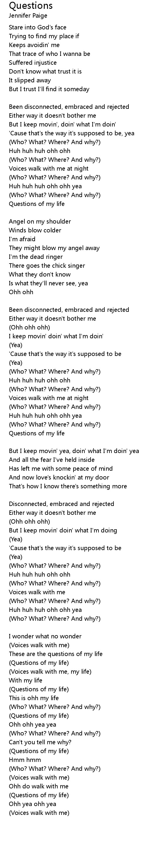Questions 歌词