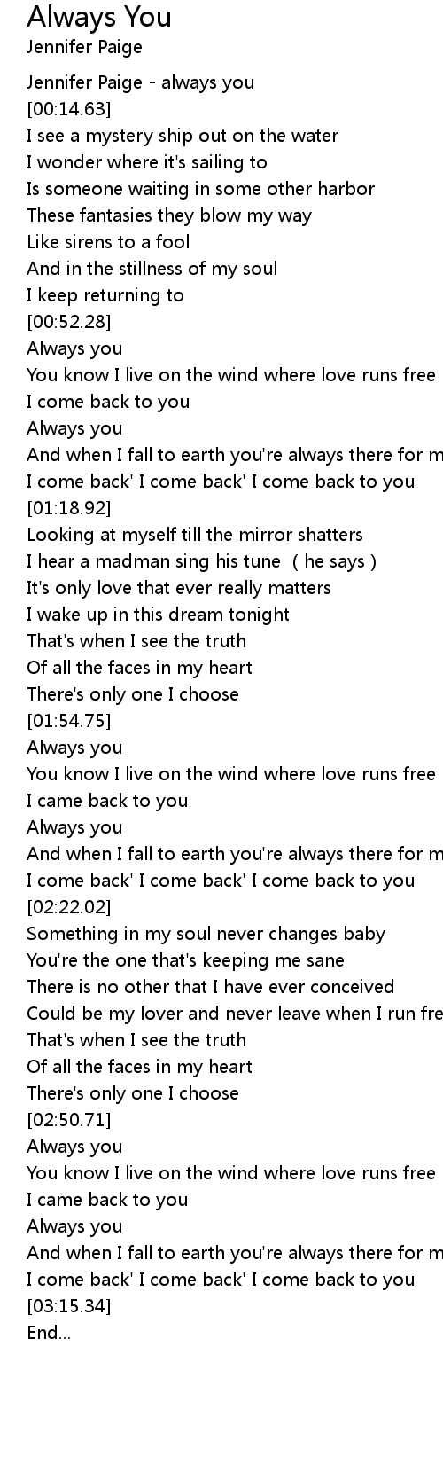 | [00:00.00] | Jennifer Paige - always you |
