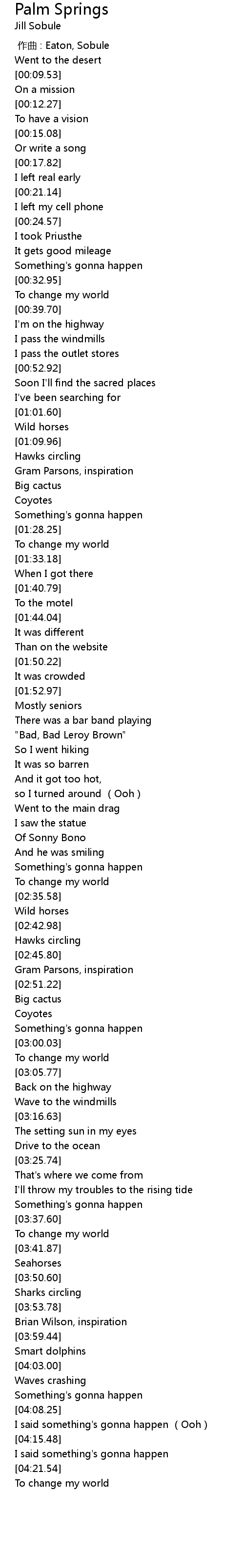 | [00:00.00] | 作曲 : Eaton, Sobule |