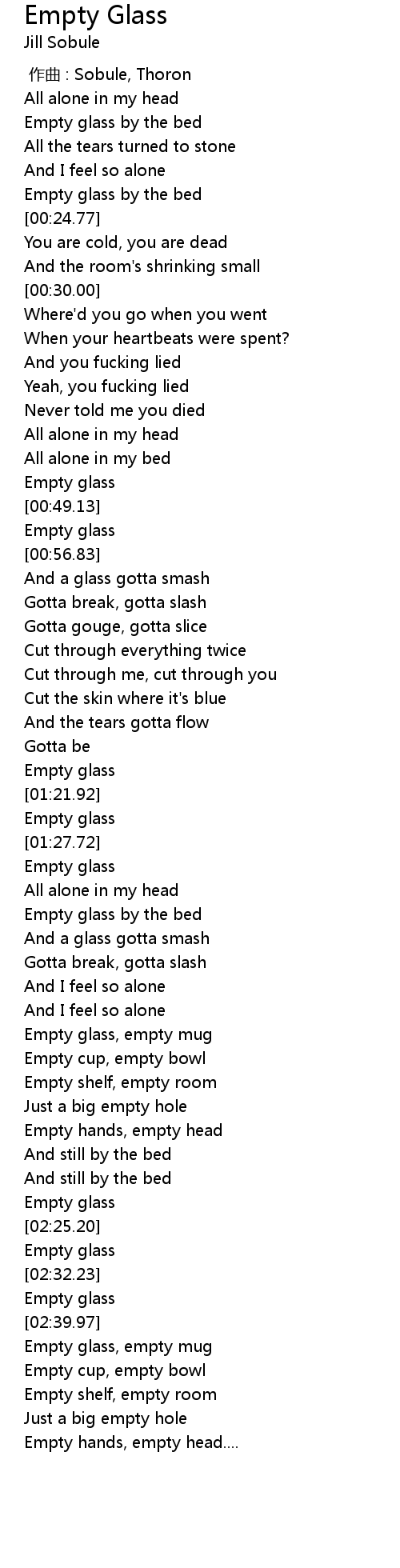 | [00:54.07] | Empty glass |