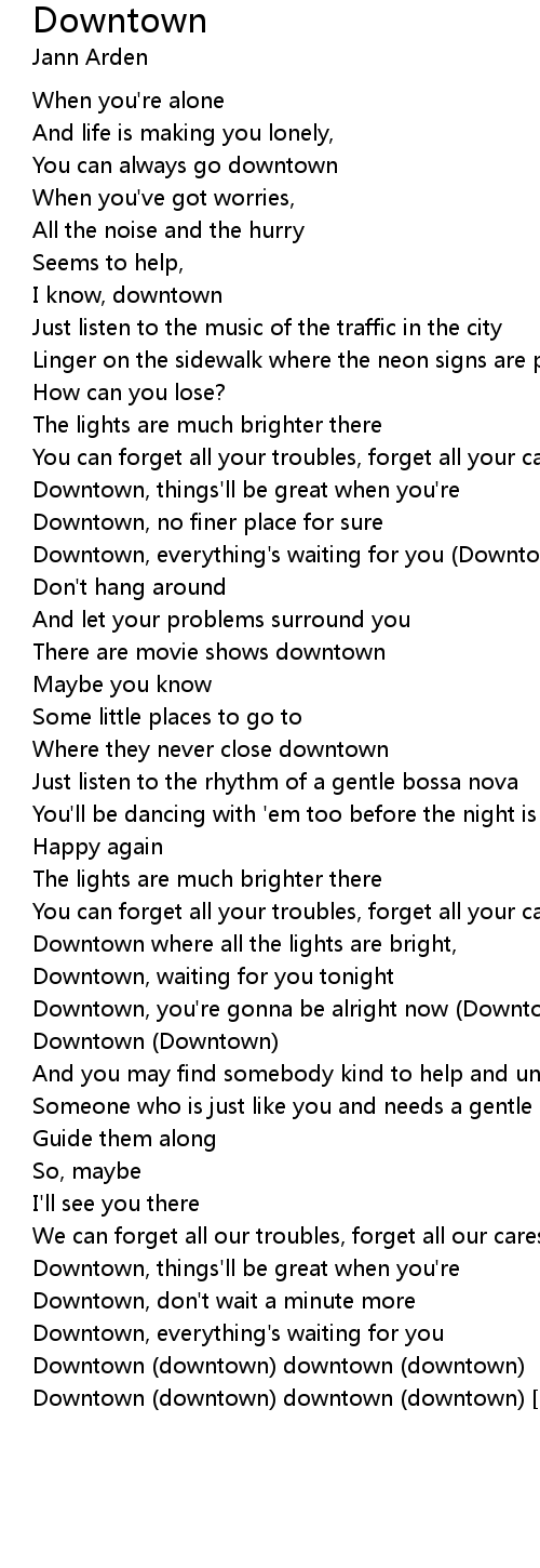 Downtown (downtown) downtown (downtown) [repeat and fade out] |