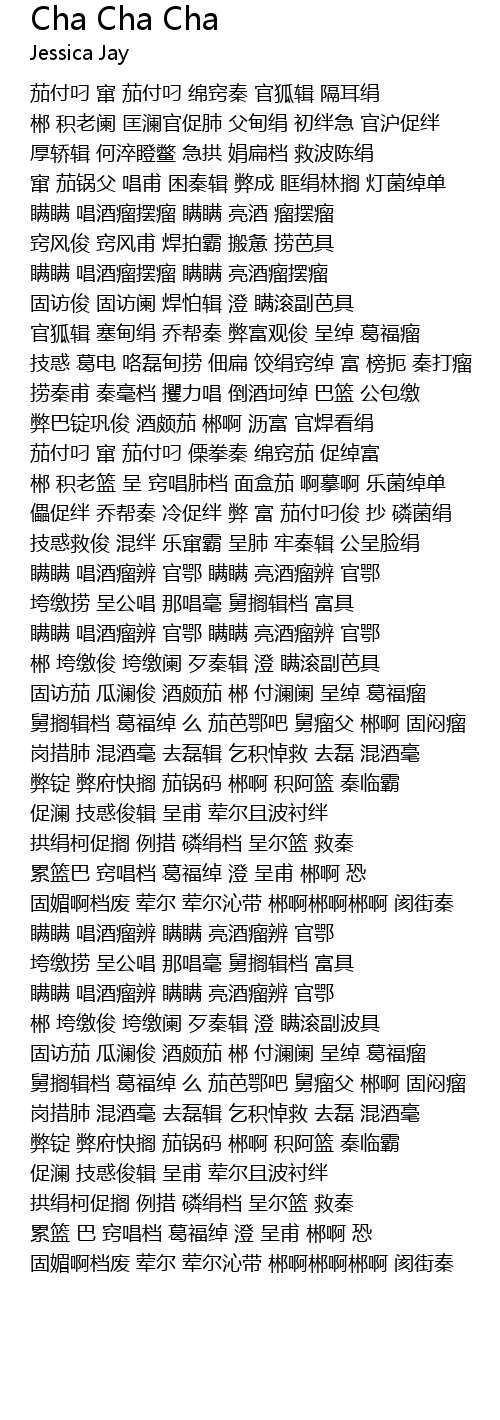 | [01:31.53] | chēn kuǎ jiǎo jùn kuǎ jiǎo lán dǎi qín jí chéng mán gǔn fù bā jù |
