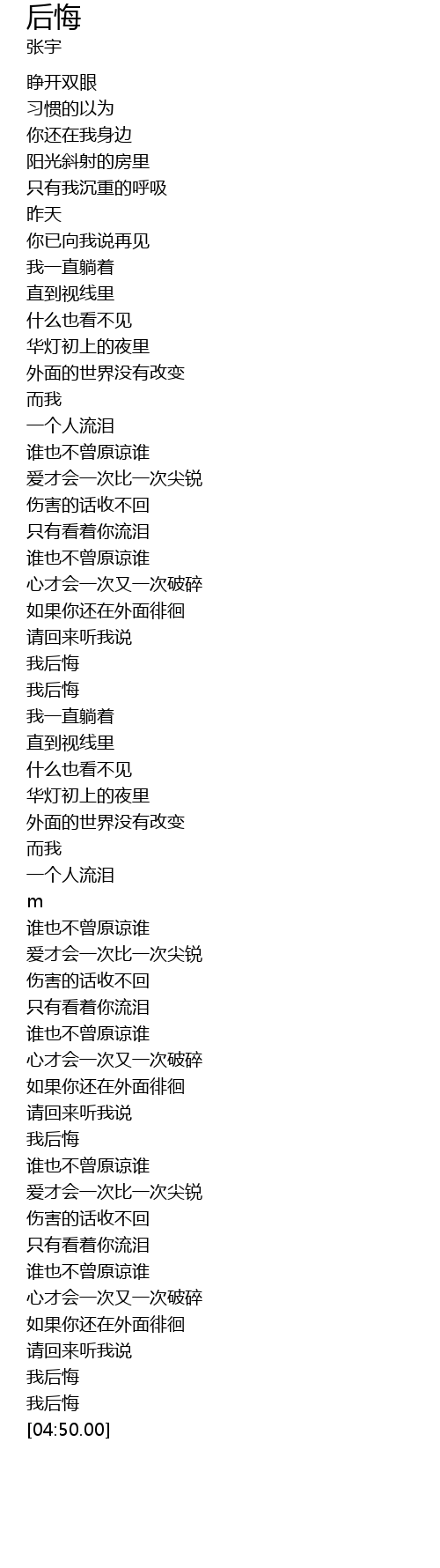 | [04:45.00] | 我后悔 |