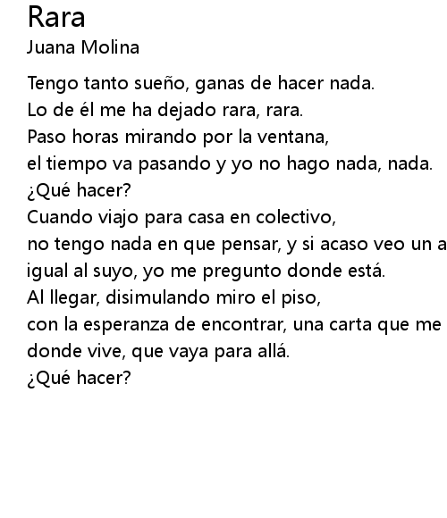 | Lo de e l me ha dejado rara, rara. | |