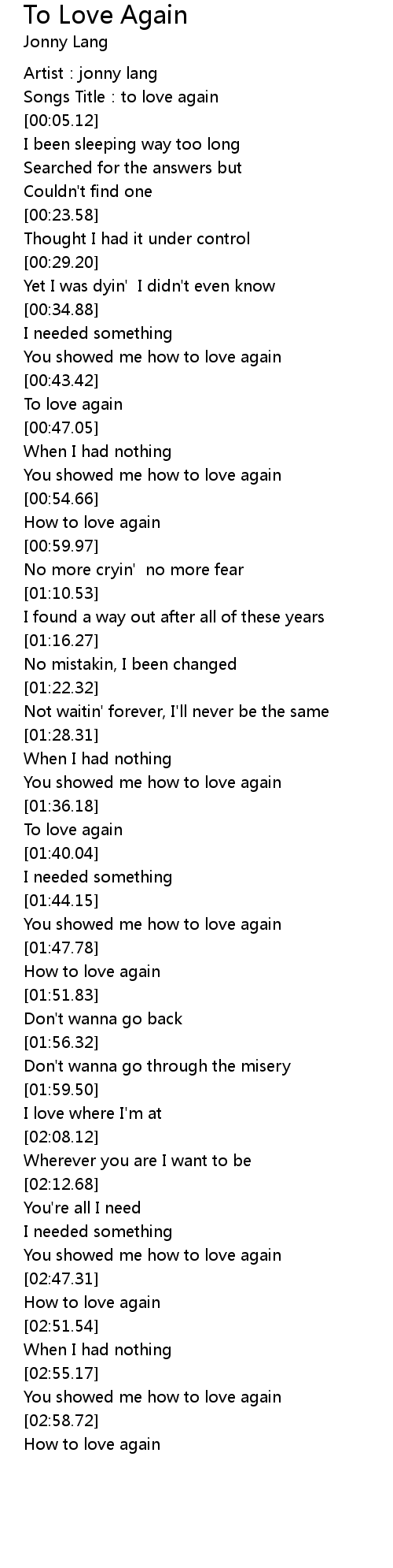 | [03:01.03] | How to love again |