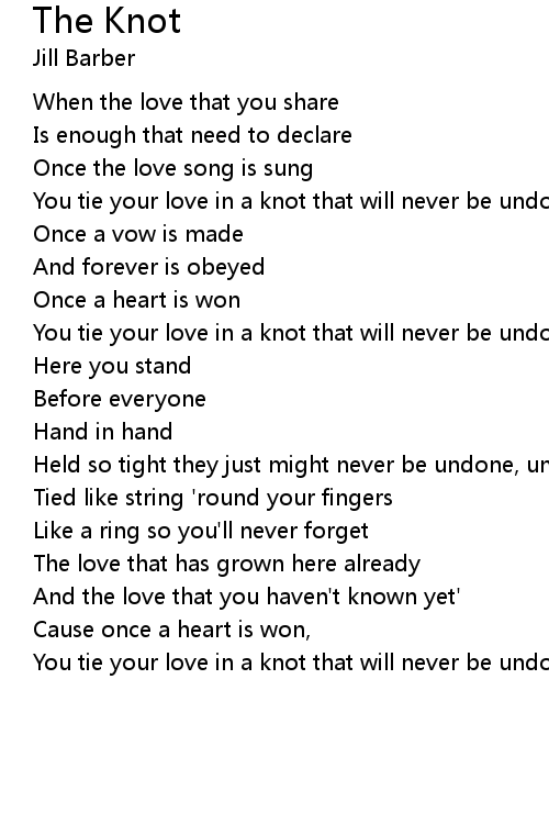 You tie your love in a knot that will never be undone |
