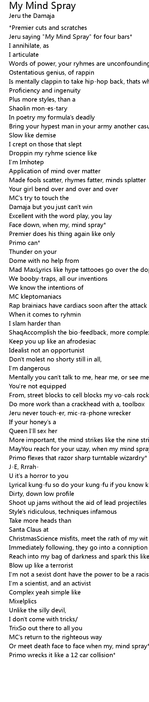 Jeru saying "My Mind Spray" for four bars* |