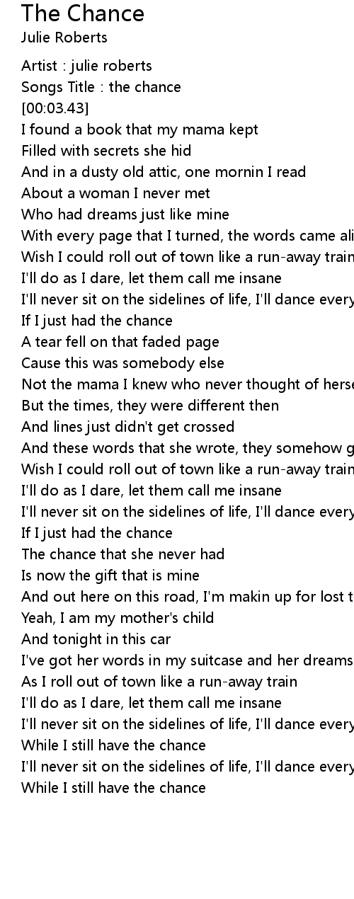 | [02:41.93] | If I just had the chance |