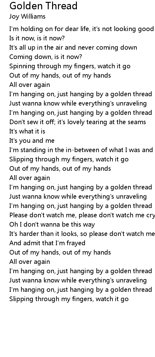 I'm hanging on, just hanging by a golden thread