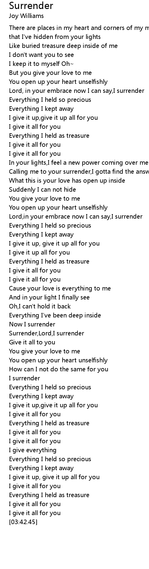 Lord,in your embrace now I can say,I surrender |