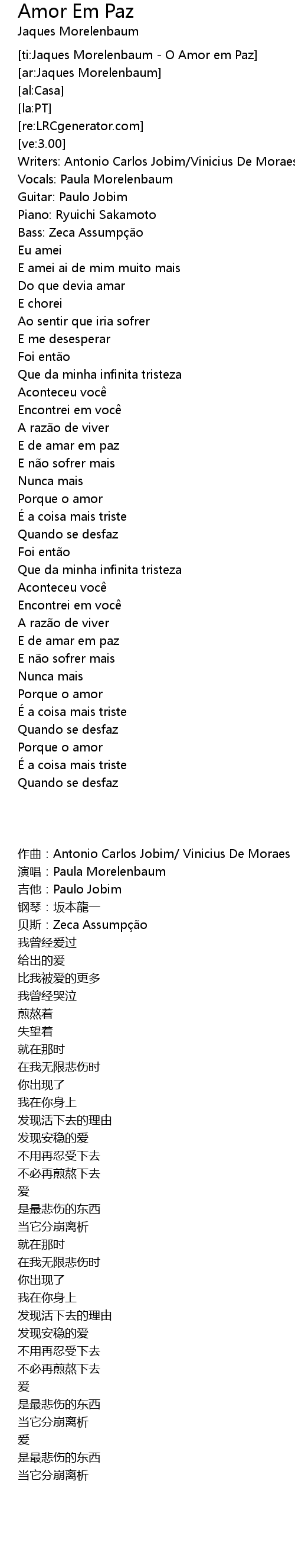 | [00:02.95] | Bass: Zeca Assumpção |