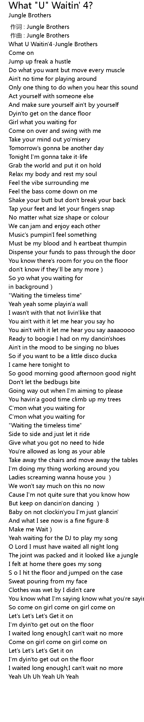 | [00:01.812] | What U Waitin' 4Jungle Brothers |