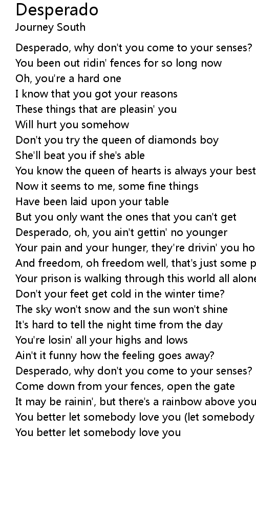 Desperado, why don't you come to your senses? |