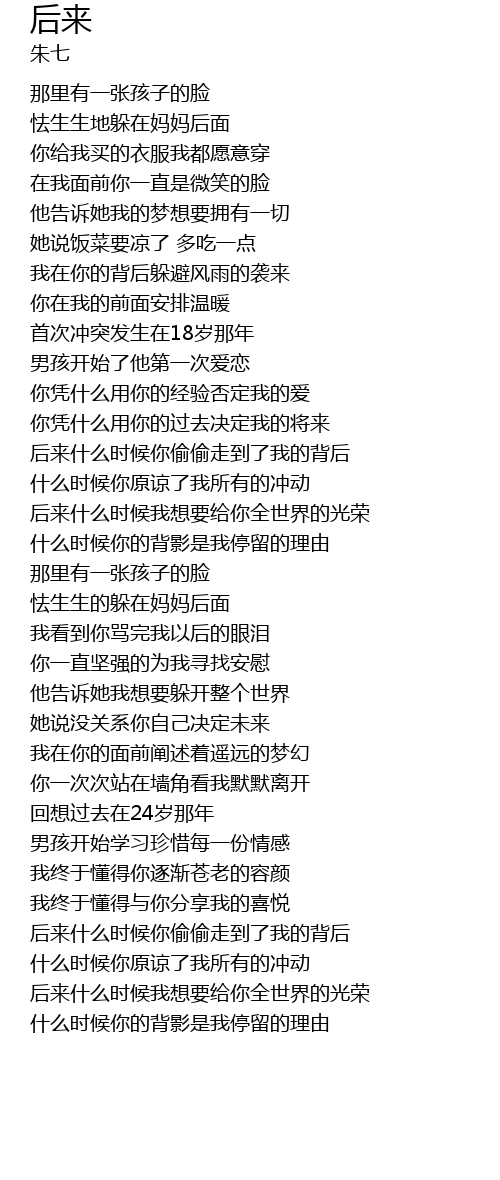 | [01:17] | 后来什么时候你偷偷走到了我的背后 |
