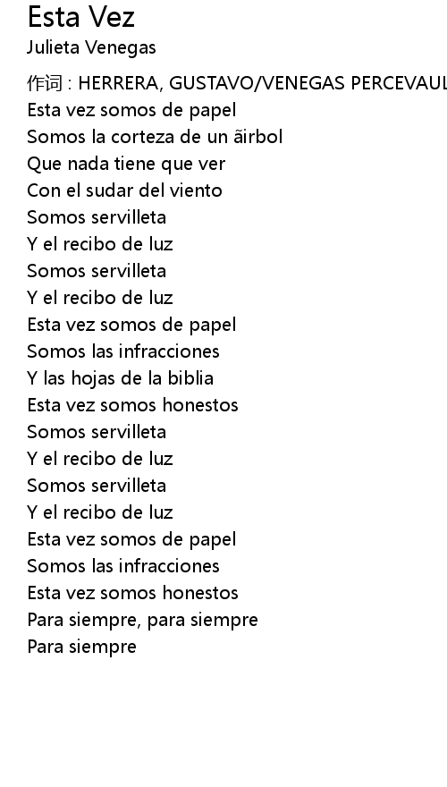 | 作词 : HERRERA, GUSTAVO/VENEGAS PERCEVAULT, JULIETA | |