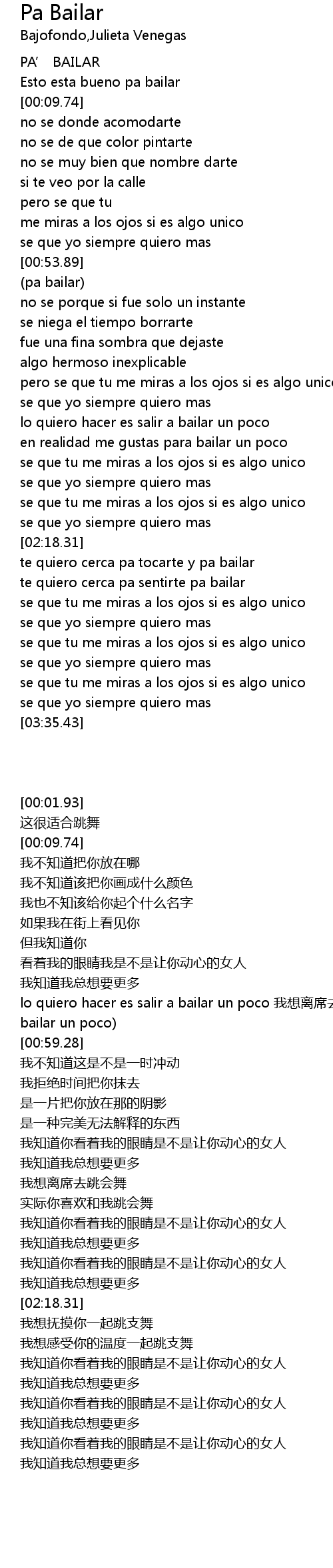 | [00:53.89] | lo quiero hacer es salir a bailar un poco 我想离席去跳会舞(pa bailar un poco) |