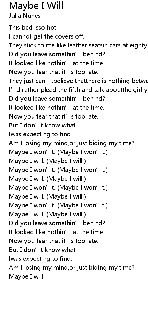 | Maybe I won’t. (Maybe I won’t.) | |