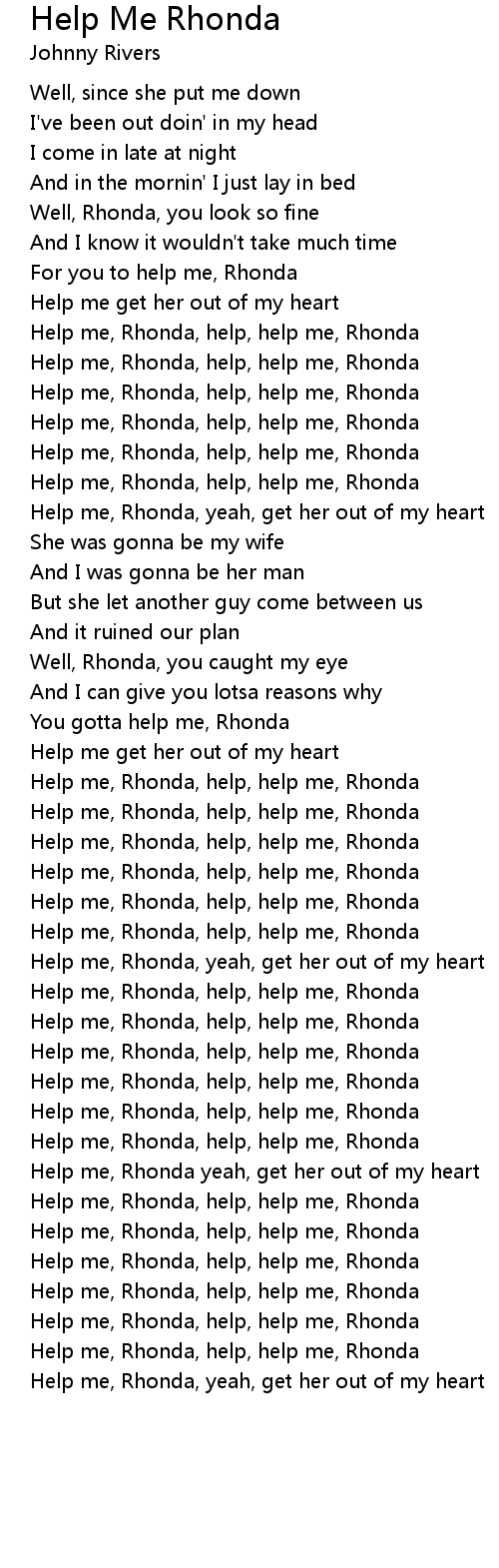 Help me, Rhonda, help, help me, Rhonda |