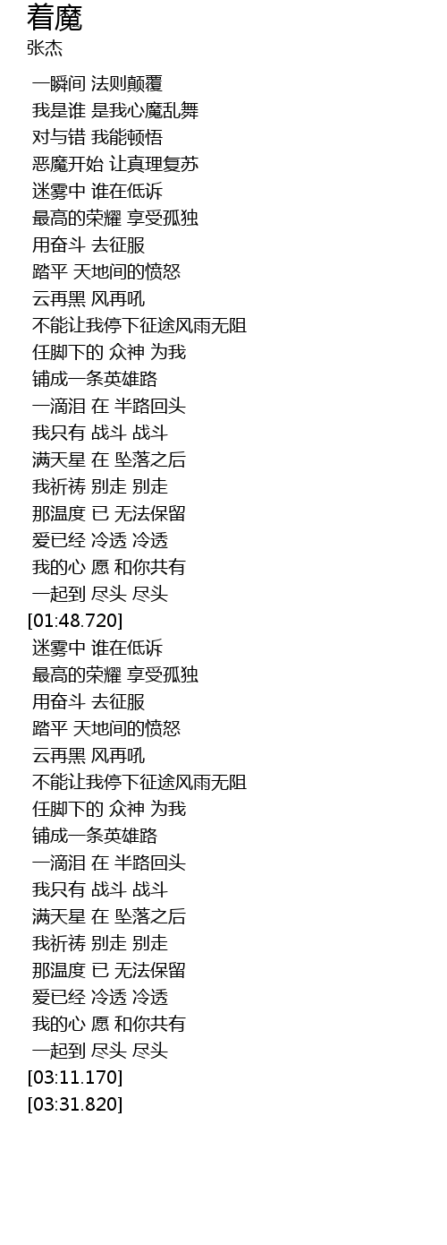 | [00:33.480] | 我是谁 是我心魔乱舞 |