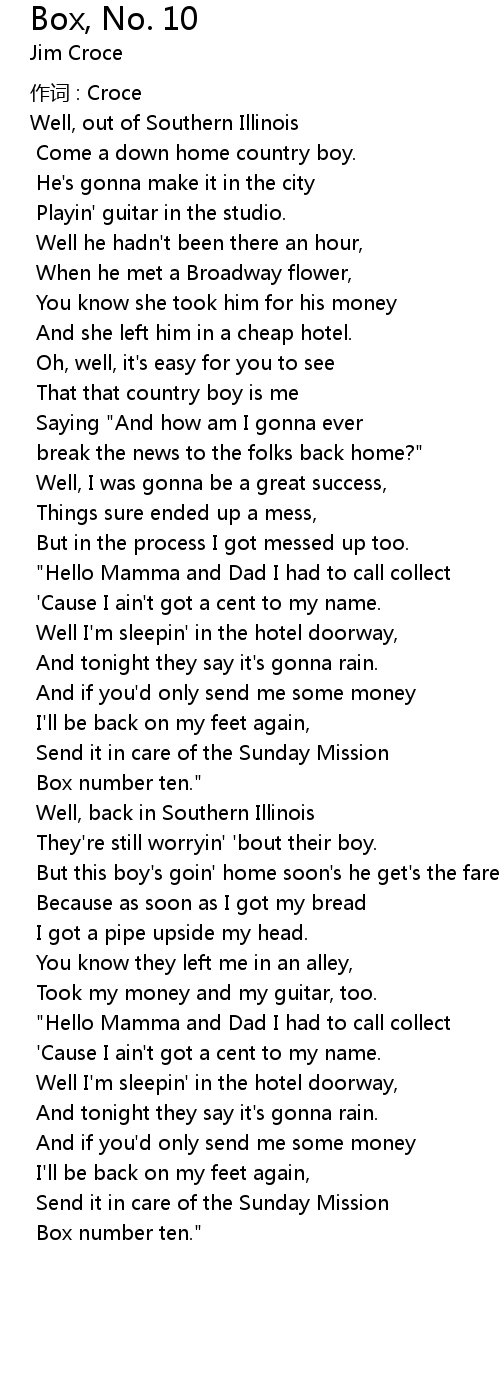 | 歌曲 | Box, No. 10 |