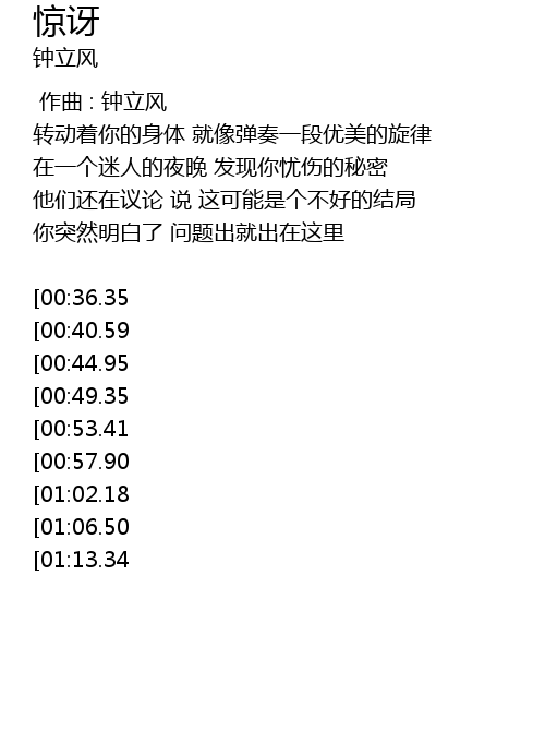 | [01:41.62][00:57.90] | 令我惊讶的是 在哪么他和他在一起 |