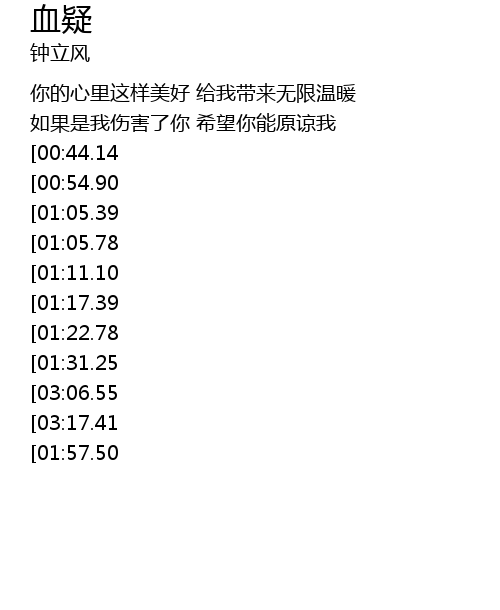 | [03:39.16][03:17.41][01:44.86] | 还有多少时候 我能活在你身边 |