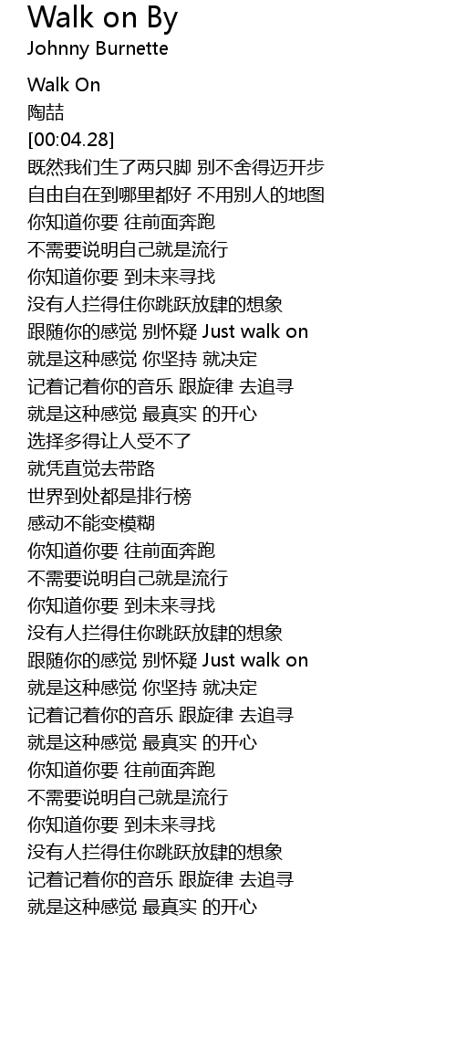 | [00:40.84] | 跟随你的感觉 别怀疑 Just walk on |