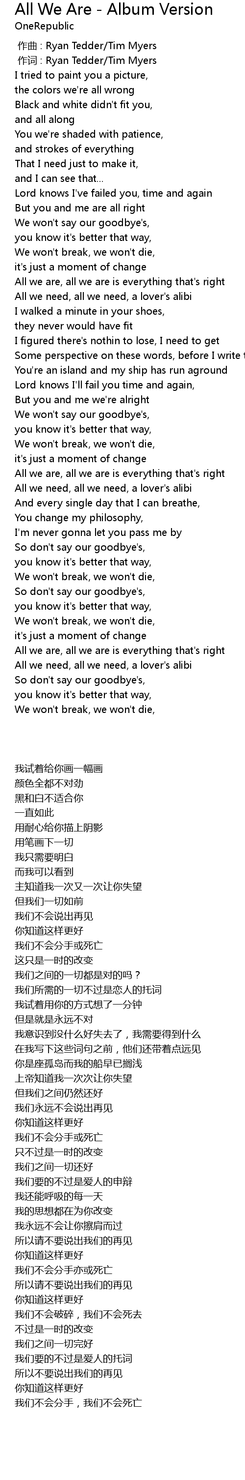 | [00:01.000] | 作词 : Ryan Tedder/Tim Myers |