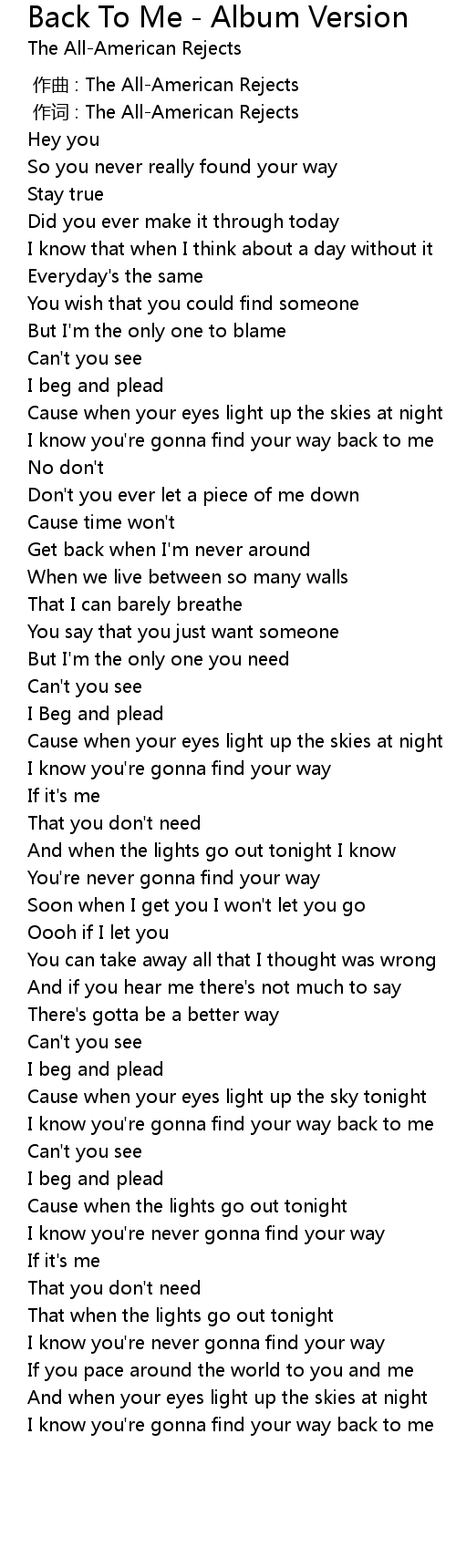 | [00:01.000] | 作词 : The All-American Rejects |