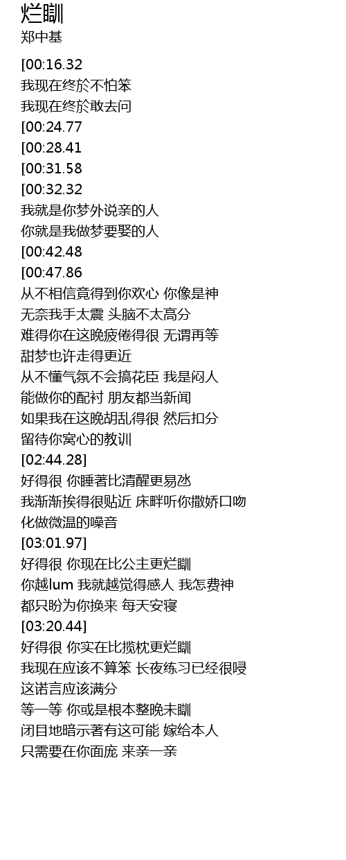 | [03:22.93] | 好得很 你实在比揽枕更烂瞓 |