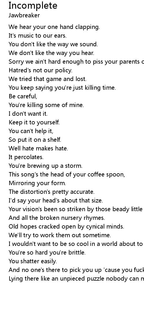 Lying there like an unpieced puzzle nobody can mend. |