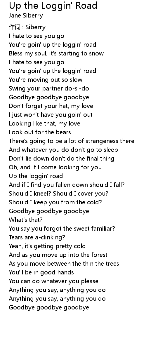 | 歌曲 | Up the Loggin' Road |