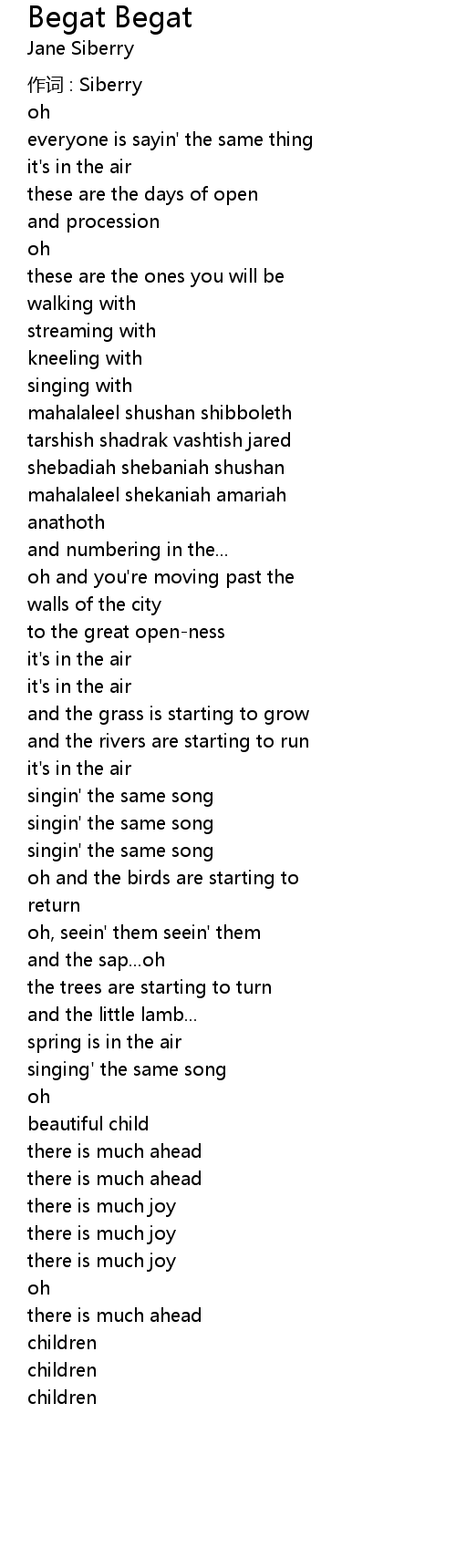 | 歌曲 | Begat Begat |
