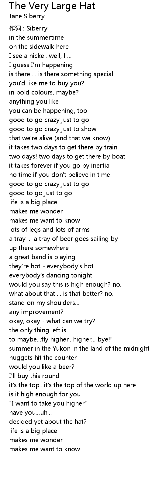 | 歌曲 | The Very Large Hat |
