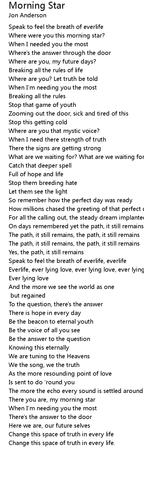 There you are, my morning star |