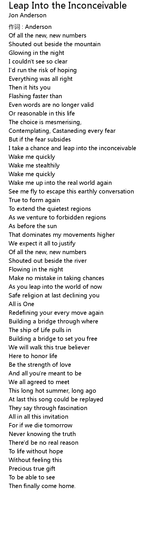 | 歌曲 | Leap Into the Inconceivable |