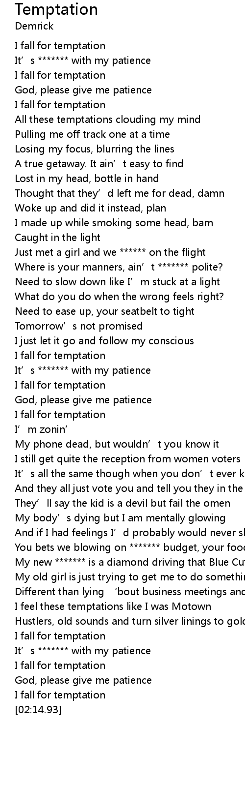 | [00:39.76] | Where is your manners, ain’t ******* polite? |