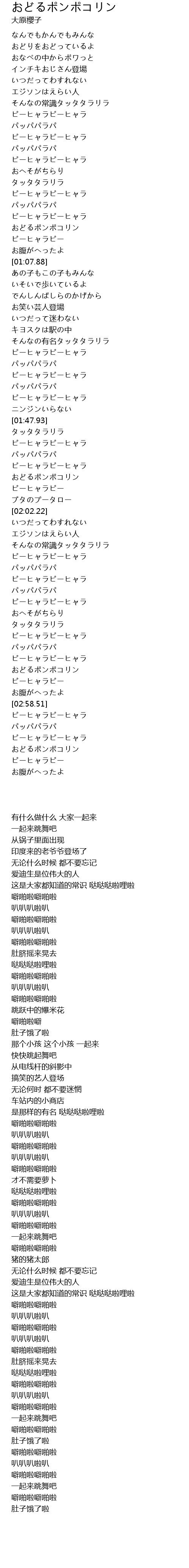 | [01:55.44] | おどるポンポコリン |