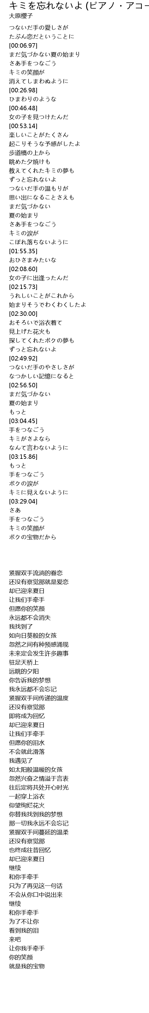 | 歌曲 | キミを忘れないよ (ピアノ・アコースティック・バージョン) |