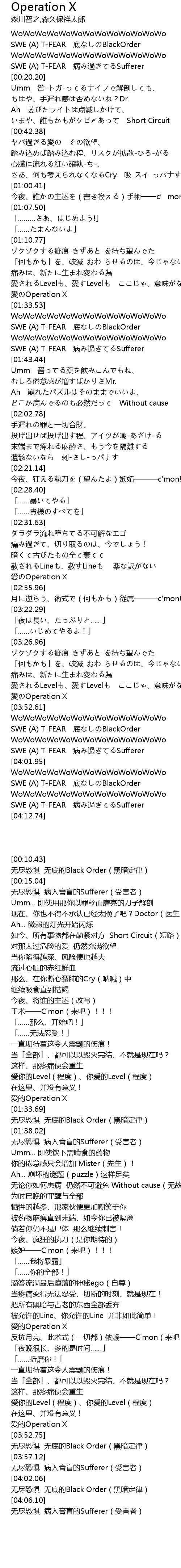 | [00:12.88] | SWE (A) T-FEAR 底なしのBlackOrder |