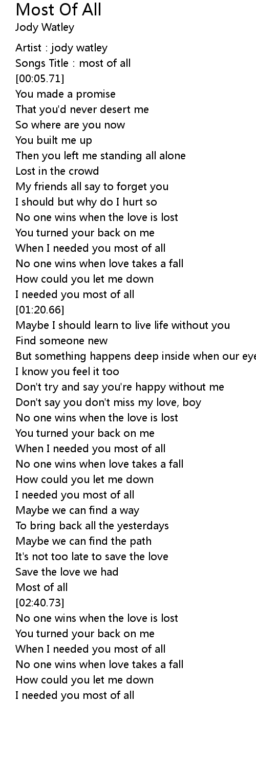 | [03:15.78] | When I needed you most of all |