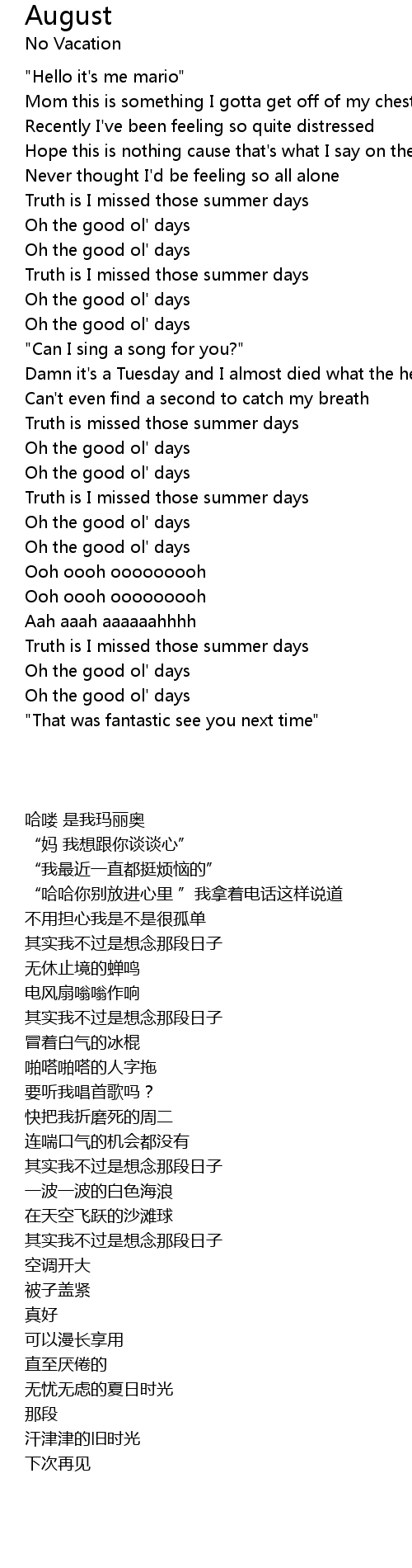 August 歌词