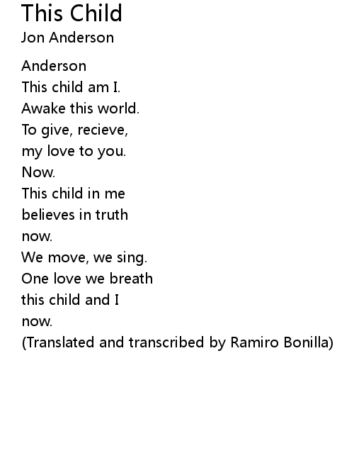 | this child and I | |