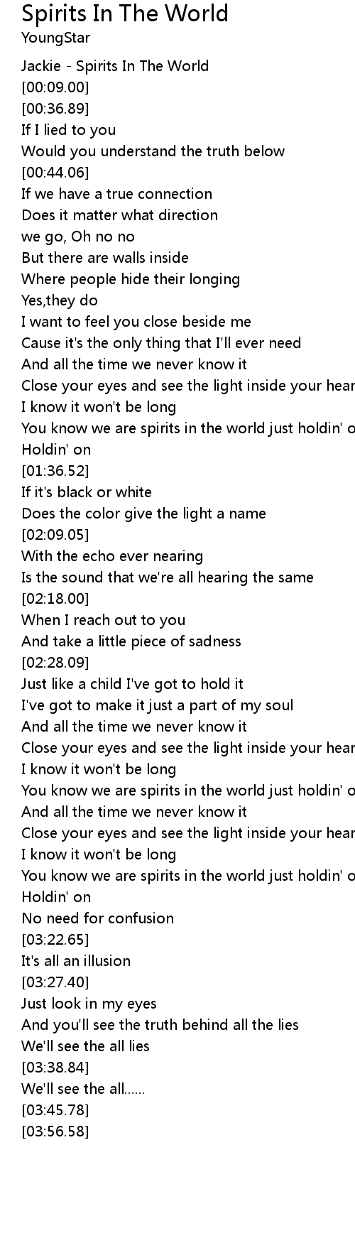 | [03:13.21] | You know we are spirits in the world just holdin' on |