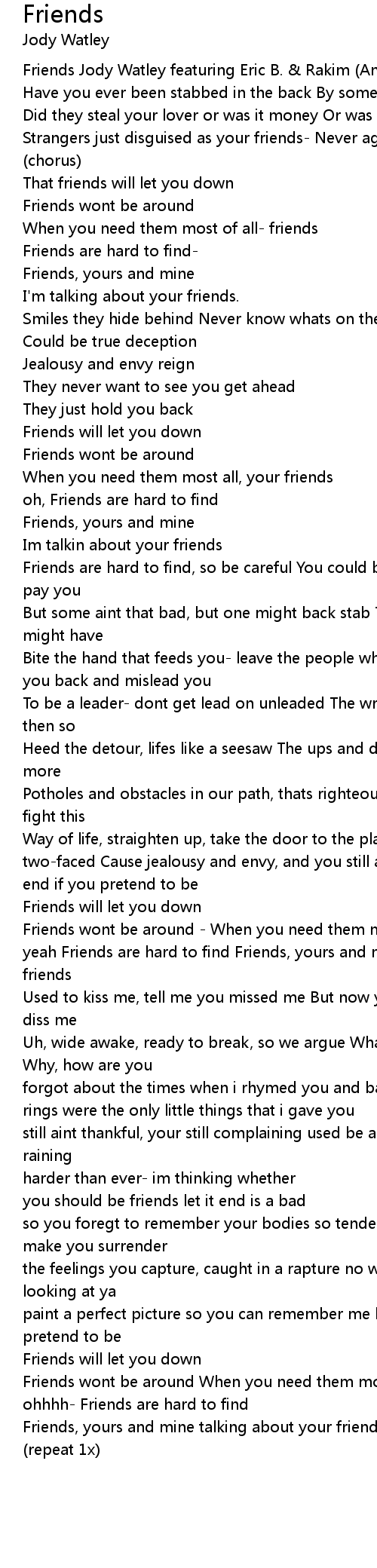 Friends Jody Watley featuring Eric B. & Rakim (Andre Cymon?Jody Watley) |