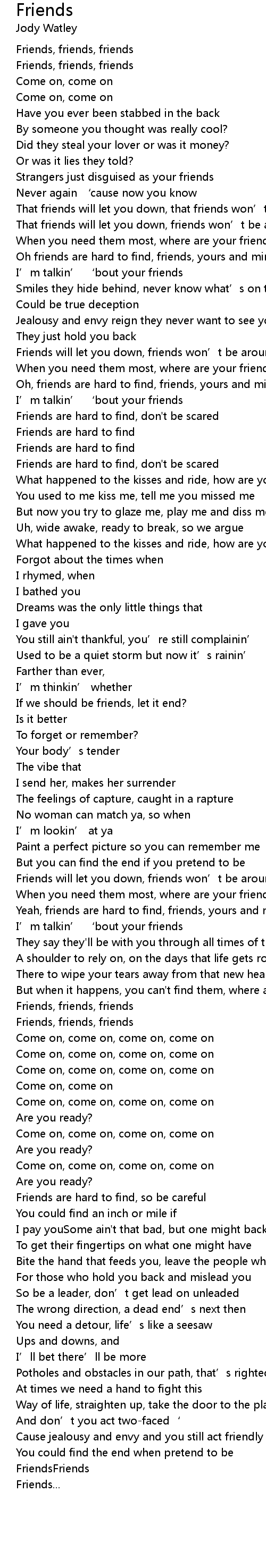 | Friends will let you down, friends won’t be around | |