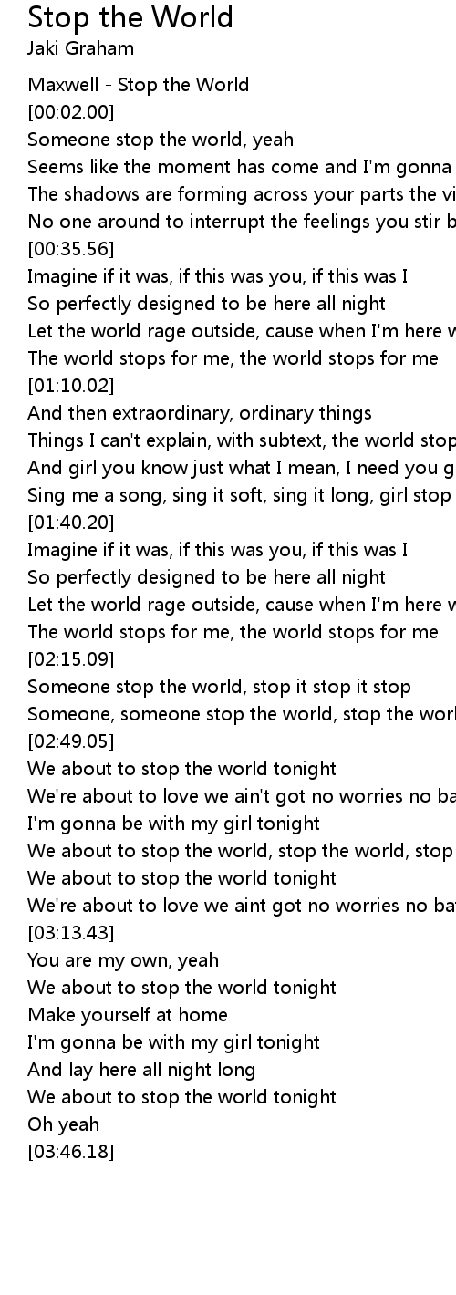 The world stops for me, the world stops for me |