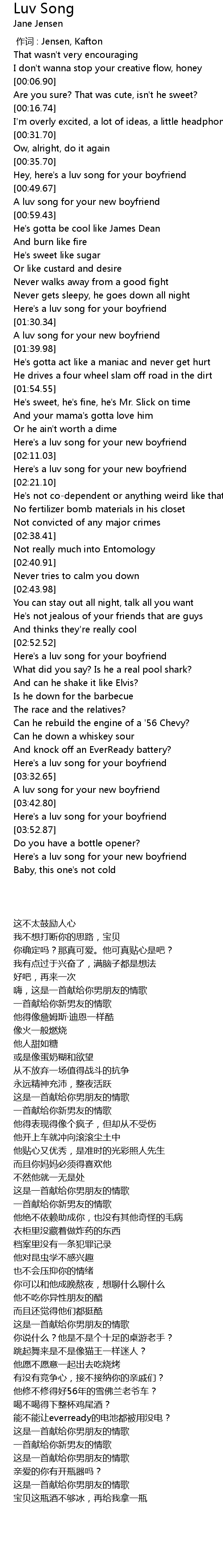 | [03:55.58] | Here's a luv song for your new boyfriend |