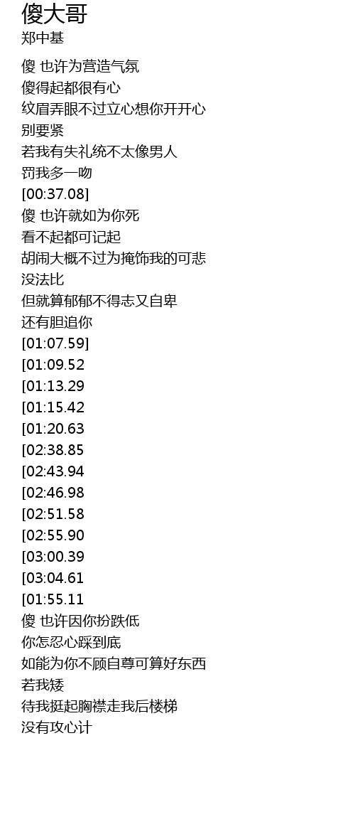 | [02:01.98] | 傻 也许因你扮跌低 |