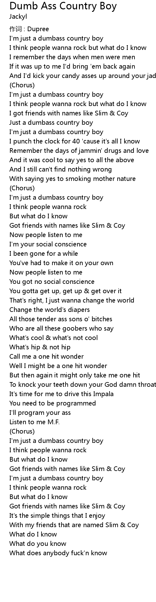 | 歌曲 | Dumb Ass Country Boy |